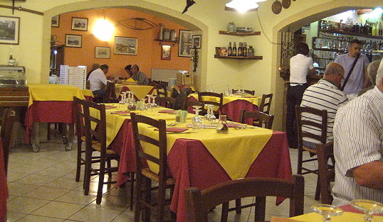 Youll find a friendly family restaurant frequented by locals (Italians eat out a lot), the food is good and reasonable. A carafe of house wine goes down well. The hotel will direct you.